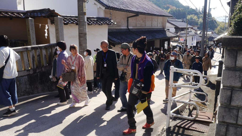 11月29-30日、第3回しらいち町家アートフェスを開催。2日間で約500人の来場者を迎えました。藤田盟児奈良女子大名誉教授を案内人に、「白市の歴史と建築を学ぶ町歩き」をはじめ、子どもミニ花展や地元小学校の作品展、着物の着付け体験など、各町家をめぐるスタンプラリーも大好評。「町家のすばらしさ、保存活動にかかわる地域のみなさんに感動した」「SNSで知り、初めて来てみたがとても良かった」「解説を聞くと、また見方が深まった」などの感想が寄せられました。