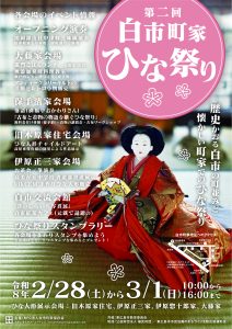 第2回白市町家ひな祭りが2月28日、3月1日に開催され、2日間の来訪者は1000人に。6つの各会場では、ひな人形の展示とともに、津軽三味線や琴演奏、落語会、お茶会、きもの、発酵食品料理教室など多彩なイベントや保育所園児のアートや中学生の書道展、昔のしらいち写真展なども展示。町家を巡るスタンプラリー をしながら、多くの方々に白市町家ひな祭りを楽しんでいただきました。 ひな祭りの前日、2月27日には、県立広島大学が地方創生コンテストで優秀賞を受賞した「歴史薫る白市の町家で楽しむーおひな祭りと白市紅茶のティータイム」ツアー、歴史深い白市を堪能し、ひな人形づくり体験など好評を博しました。